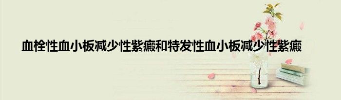 本文,血栓性血小板减少性紫癜和特发性血小板减少性紫癜到此就分享完毕,希望对大家有所帮助。