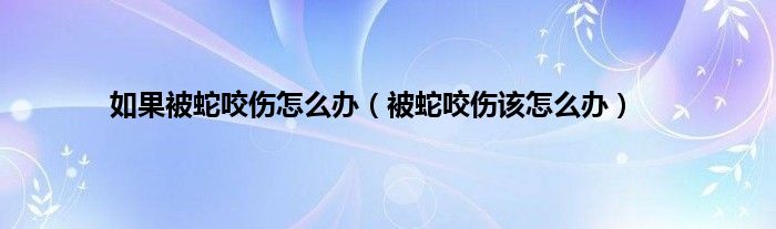 大家好,如果被蛇咬伤怎么办,被蛇咬伤该怎么办很多人还不知道,现在让我们一起来看看吧!