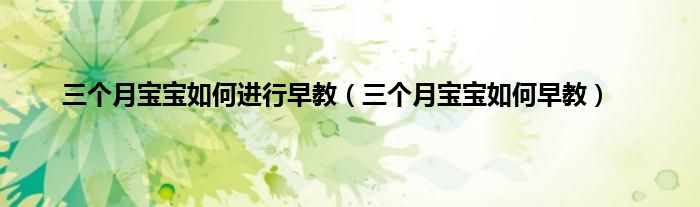 大家好,三个月宝宝如何进行早教,三个月宝宝如何早教很多人还不知道,现在让我们一起来看看吧!