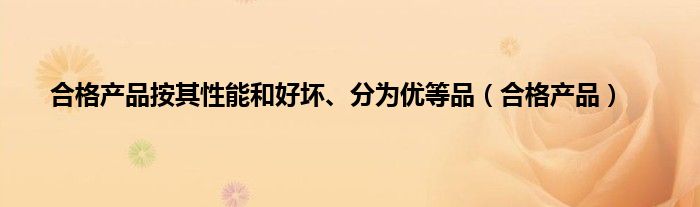 大家好,小问来为大家解答以上问题。合格产品按其性能和好坏、分为优等品,合格产品这个很多人还不知道,现在让我们一起来看看吧!