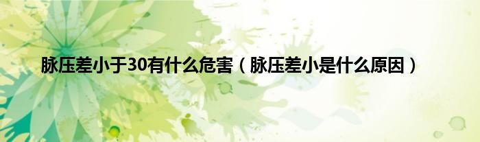 本文,脉压差小于30有什么危害,脉压差小是什么原因到此就分享完毕,希望对大家有所帮助。