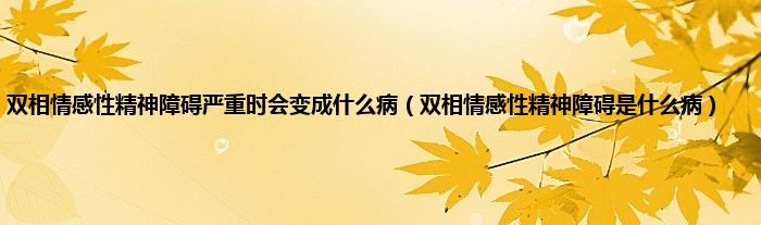 本文,双相情感性精神障碍严重时会变成什么病,双相情感性精神障碍是什么病到此就分享完毕,希望对大家有所帮助。