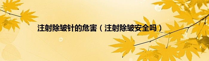 大家好,注射除皱针的危害,注射除皱安全吗很多人还不知道,现在让我们一起来看看吧!