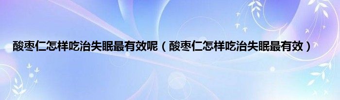 本文,酸枣仁怎样吃治失眠最有效呢,酸枣仁怎样吃治失眠最有效到此就分享完毕,希望对大家有所帮助。