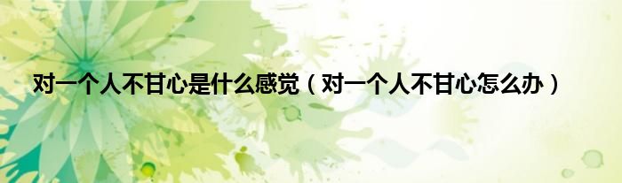 对一个人不甘心是什么感觉(对一个人不甘心怎么办)
