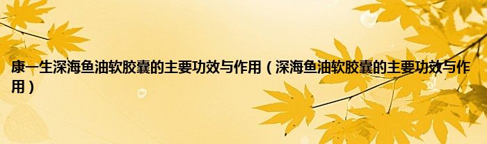 大家好,康一生深海鱼油软胶囊的主要功效与作用,深海鱼油软胶囊的主要功效与作用很多人还不知道,现在让我们一起来看看吧!