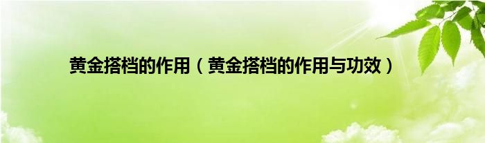 以上就是【黄金搭档的作用,黄金搭档的作用与功效】相关内容。
