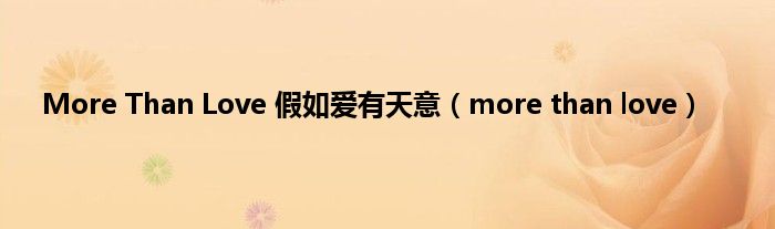 大家好,小问来为大家解答以上问题。More Than Love 假如爱有天意,more than love这个很多人还不知道,现在让我们一起来看看吧!