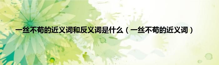 本文,一丝不苟的近义词和反义词是什么,一丝不苟的近义词到此就分享完毕,希望对大家有所帮助。