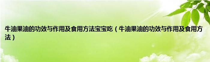本文,牛油果油的功效与作用及食用方法宝宝吃,牛油果油的功效与作用及食用方法到此就分享完毕,希望对大家有所帮助。