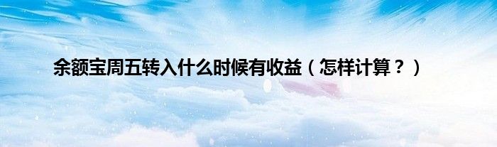 大家好,余额宝周五转入什么时候有收益,怎样计算?很多人还不知道,现在让我们一起来看看吧!