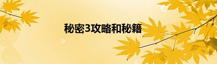 大家好,秘密3攻略和秘籍很多人还不知道,现在让我们一起来看看吧!