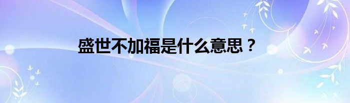 本文,盛世不加福是什么意思?到此就分享完毕,希望对大家有所帮助。