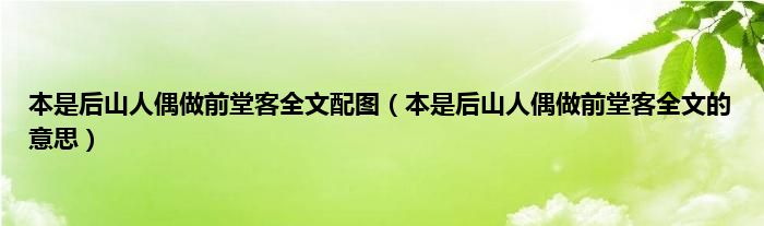 大家好,本是后山人偶做前堂客全文配图,本是后山人偶做前堂客全文的意思很多人还不知道,现在让我们一起来看看吧!