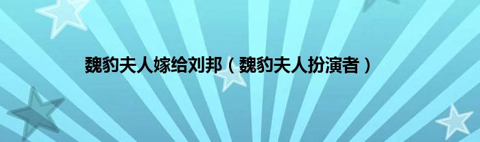 本文,魏豹夫人嫁给刘邦,魏豹夫人扮演者到此就分享完毕,希望对大家有所帮助。
