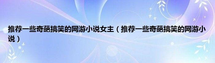本文,推荐一些奇葩搞笑的网游小说女主,推荐一些奇葩搞笑的网游小说到此就分享完毕,希望对大家有所帮助。