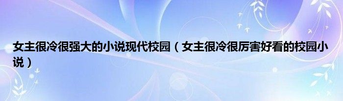 本文,女主很冷很强大的小说现代校园,女主很冷很厉害好看的校园小说到此就分享完毕,希望对大家有所帮助。