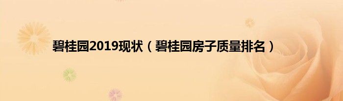 大家好,碧桂园2019现状,碧桂园房子质量排名很多人还不知道,现在让我们一起来看看吧!