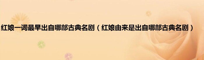 大家好,红娘一词最早出自哪部古典名剧,红娘由来是出自哪部古典名剧很多人还不知道,现在让我们一起来看看吧!
